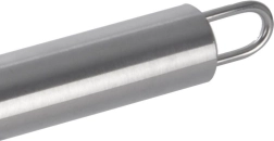 Izturīgais nerūsējošā tērauda izpildījums nodrošina ilgmūžību un vienkāršu kopšanu, tostarp iespēju mazgāt trauku mazgājamajā mašīnā. Garais ergonomiskais rokturis ērti ieguļ plaukstā, bet iekarināšanas austiņa ļauj kompakti uzglabāt uz līstes vai āķa.