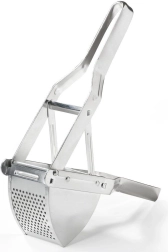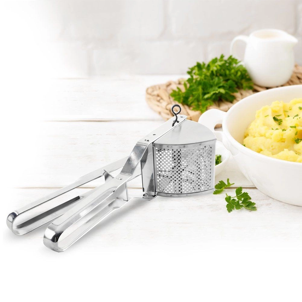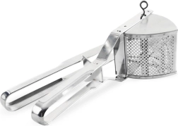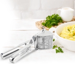 Šī izturīgā kartupeļu spiede no nerūsējošā tērauda bez piepūles izspiež vārītus kartupeļus, kā arī citu mīkstu dārzeņu vai augļu masu. Pateicoties stingrajai konstrukcijai un ērtajiem rokturiem, pietiek vien viegli piespiest, un dažu mirkļu laikā iegūsiet smalku un gaisīgu konsistenci bez kunkuļiem.