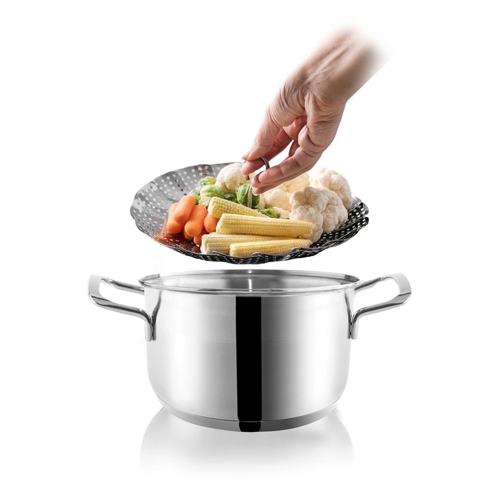 Saliekams tvaicētājs no kvalitatīva nerūsējošā tērauda nodrošina saudzīgu tvaicēšanu, kuras laikā produkti saglabā garšu, krāsu un uzturvielas. Regulējamais 14–23 cm diametrs nodrošina saderību ar dažāda izmēra katliem, lai varētu gatavot visu – no dārzeņiem un zivīm līdz pat klimpām.