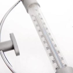 Praktisks āra termometrs precīzai temperatūras kontrolei uz balkona, terases vai dārzā. Tas piedāvā pārskatāmu skalu no -40 °C līdz +50 °C, ir izturīgs pret laikapstākļu ietekmi un to ir viegli uzstādīt. Moderns nerūsējošā tērauda dizains ar sudrabotu virsmu lieliski iederēsies jebkurā ārtelpā.