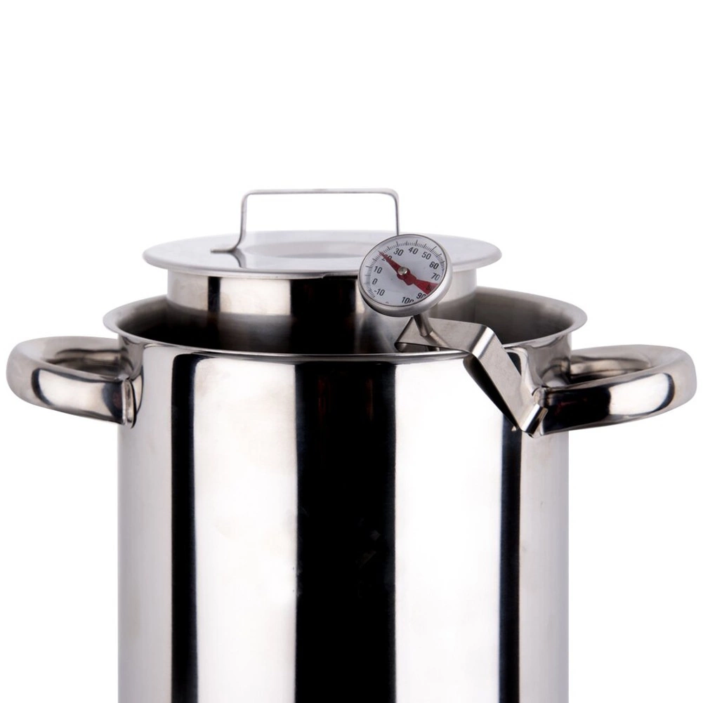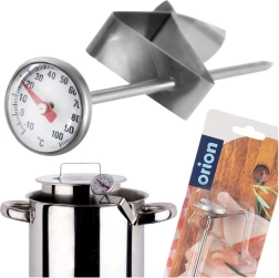 Analogais ciparnīca ar skaidru skalu no -10 °C līdz +100 °C un 5 °C iedaļām nodrošina ātru orientāciju un uzticamu šķidrumu un ēdienu temperatūras kontroli.