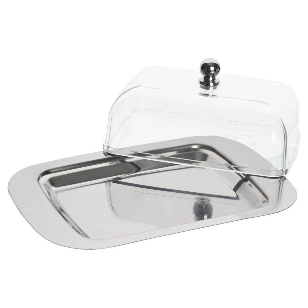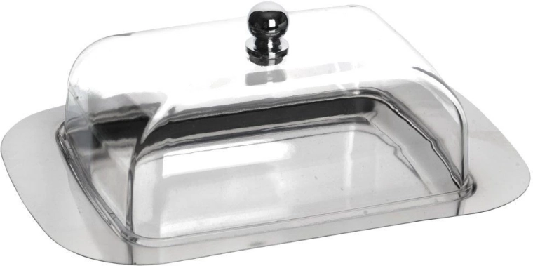 Kupolveida vāks ar metāla pogu nodrošina ērtu pacelšanu un uzticami aizsargā sviestu no putekļiem un smakām.