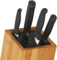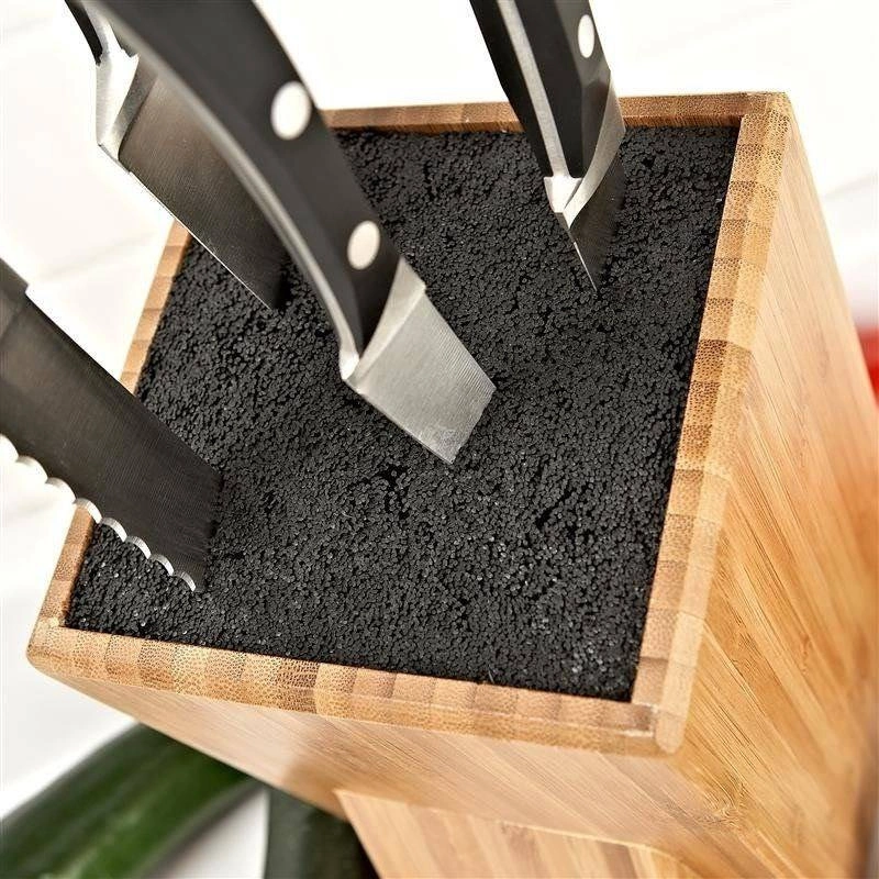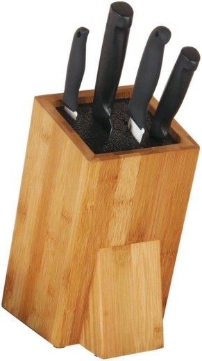 Praktisks un stilīgs darba virsmas aksesuārs, kas uztur nažus, šķēres un citus piederumus vienmēr pa rokai un kārtīgi sakārtotus. Dabīgais bambuss izceļas ar izturību un laikmetīgu izskatu, tāpēc lieliski iederas gan modernos, gan klasiskos interjeros. Universālais ieliktnis ar blīvu plastmasas šķiedru droši fiksē dažāda garuma un platuma asmeņus.