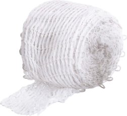 Tīkls apvieno gumiju un kvalitatīvu poliestera šķiedru drošai savilkšanai un ruletes vai šķiņķa formas noturēšanai bez plaisāšanas.