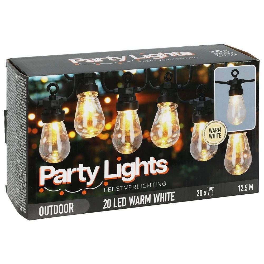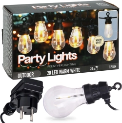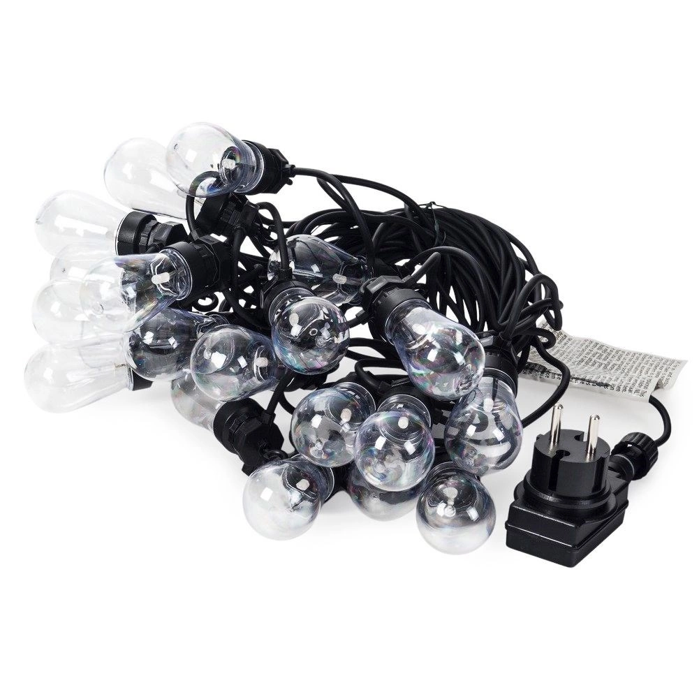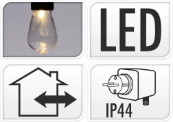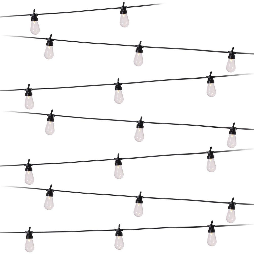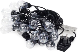 Stilīga gaismas virtene ar garumu 12,5 m un 20 caurspīdīgām LED spuldzēm radīs mājīgu atmosfēru balkonā, terasē un dārzā. Tā piedāvā neitrālu gaismas toni, IP44 aizsardzību izmantošanai ārā un praktiskus āķus ērtai iekāršanai. Pateicoties 3 m pievades kabelim un 50 cm atstatumam starp spuldzēm, tā ir ideāli piemērota dekoratīvai apgaismošanai sēdētavām, ballītēm un kāzām.