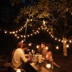 Katrai ligzdai ir praktisks āķis ātrai un drošai uzstādīšanai uz pergolas, žoga vai koku zariem. Viegls un viegli kopjams komplekts nodrošina vienmērīgu gaismas sadalījumu, pateicoties 50 cm atstatumam starp spuldzēm un pietiekami garam 3 m pievades vadam.
