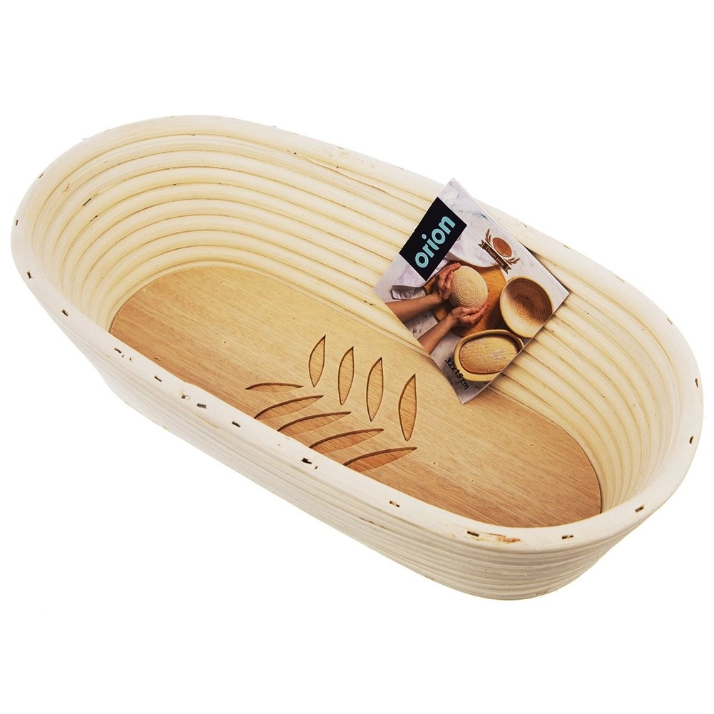 Ovāls ratanas grozs maizes raudzēšanai boķetēm ap 1,5 kg palīdz mīklai saglabāt formu un veido skaistu struktūru garoziņā. Izgatavots no dabīgām ratanas šķiedrām bēšā krāsā ar dekoratīvu lapas motīvu. Ideāli piemērots gan mājas, gan profesionālai cepšanai – labākai drupatas struktūrai un vienmērīgai raudzēšanai. Dabīgs materiāls, optimāla ventilācija un tradicionāla klaipa forma nevainojamam rezultātam.