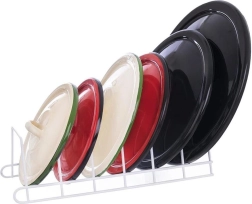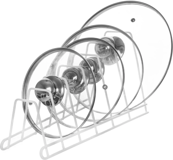Statīvs ir piemērots dažādiem izmēriem un tipiem – no vākiem ar rokturi līdz seklajiem šķīvjiem un griešanas dēlīšiem; lietojams gan skapī, gan uz virsmas.