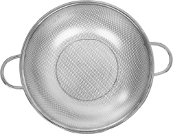 Universāls nerūsējošā tērauda sietiņš bļodas formā ar praktiskām rokturiem un stabilām kājiņām ir ideāls augļu un dārzeņu mazgāšanai, makaronu un rīsu nokāšanai un ikdienas darbam virtuvē. Izgatavots no kvalitatīva nerūsējošā tērauda, tas ir izturīgs, viegli tīrāms un piemērots mazgāšanai trauku mazgājamajā mašīnā.
