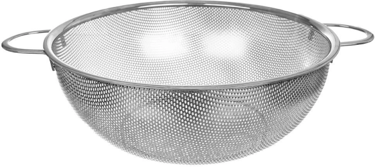 Smalkais nerūsējošā tērauda pinums nodrošina ātru ūdens noteci un vienlaikus droši notur arī sīkas sastāvdaļas, piemēram, rīsus vai ogas.