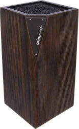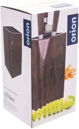 Elegants koka nažu statīvs ORION Wooden ar izmēriem 11 × 11 × 23 cm piedāvā universālu un drošu uzglabāšanu dažāda tipa nažiem – tērauda, keramikas un kombinētajiem. Pateicoties izņemamai plastmasas šķiedras ieliktnei, tas pielāgojas asmens formai bez notrulināšanas riska un palīdz uzturēt virtuvē nevainojamu kārtību. Stabilitāti nodrošina pretbuksēšanas paliktņi, bet kvalitatīvs tumšs koks piešķir jūsu virtuvei stilu.