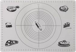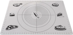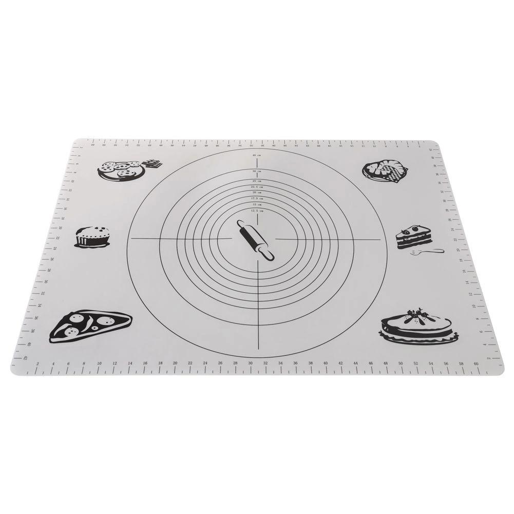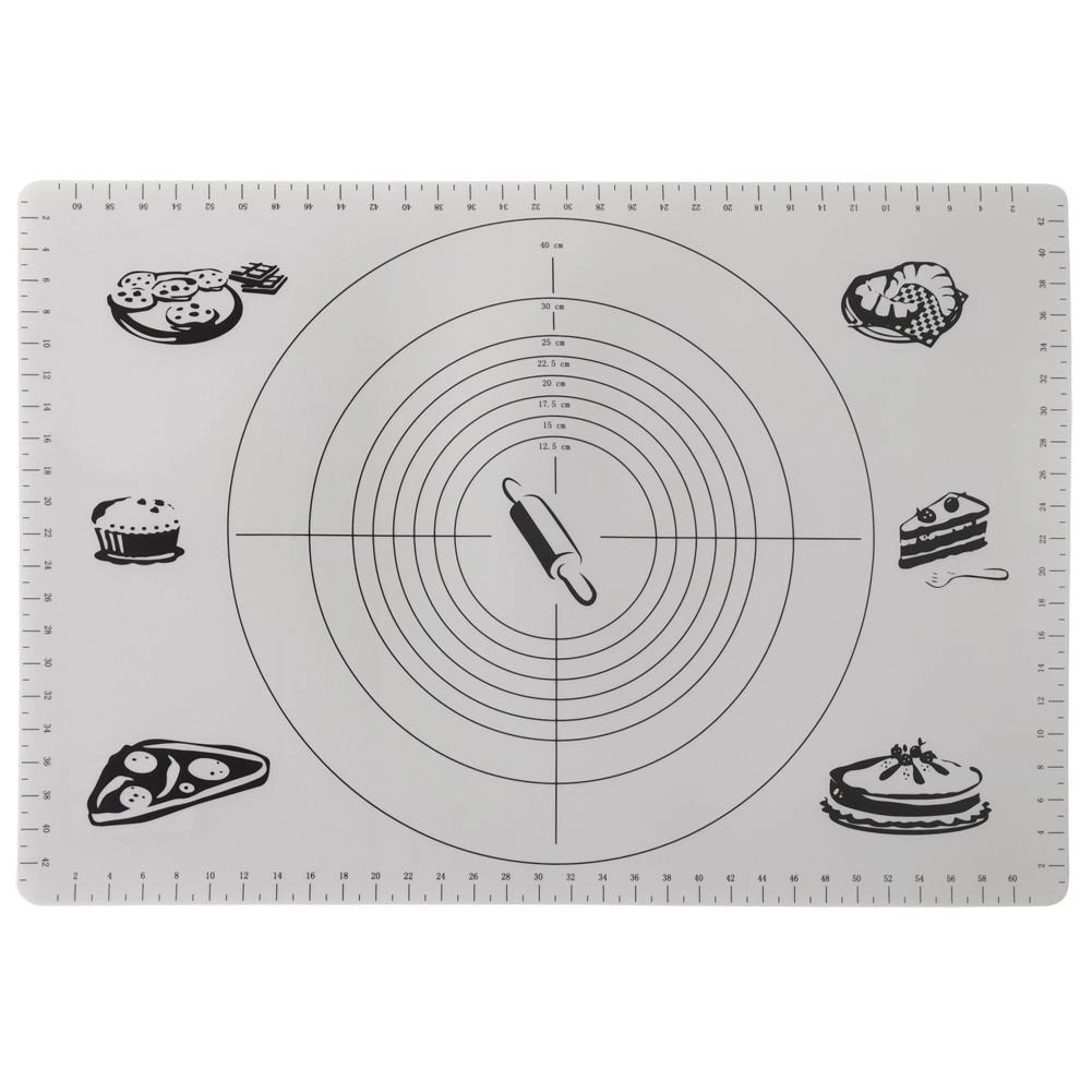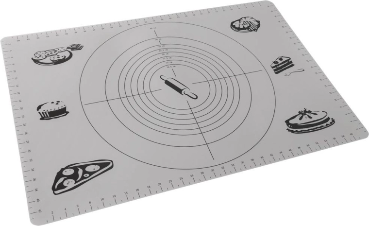 Praktisks virtuves paliktnis ar izmēriem 65 × 45 cm un atzīmētiem mērierīčiem centimetros, kā arī apaļām šablona līnijām precīzai mīklas formēšanai. Tas ir viegls, izturīgs, nepielīpošs un viegli kopjams. Ideāli piemērots picas, maizes un konditorejas izstrādājumu un makaronu pagatavošanai, aizsargā darba virsmu un atvieglo rullēšanu bez liekas miltu kaisīšanas.
