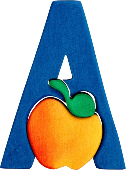 Koka ieliekamais burts A ar ābola motīvu ir ideāls palīgs pirmajai iepazīšanai ar burtiem. Detal̨as precīzi ieguļ, kas veicina koncentrēšanos un pacietību. Virsma apstrādāta ar bērniem drošām krāsām, un izstrādājums atbilst ES drošības standartiem.