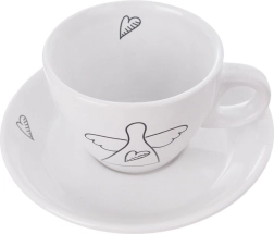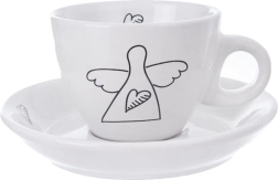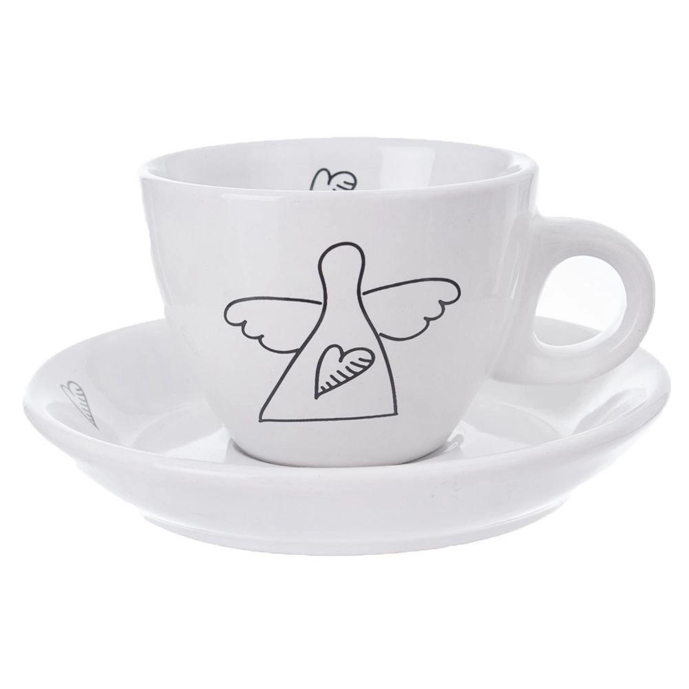 Atklājiet stilīgas un praktiskas espresso tasītes, kas izcels jebkuru galdu. Minimalistisks balts dizains ar melnu līniju zīmējumu – eņģelis un sirds – piešķir jūsu kafijas rituālam smalku eleganci. Katrai tasītei ir ergonomisks rokturis, bet apakštasīte notver piles un tur karotīti vai nelielu desertu.