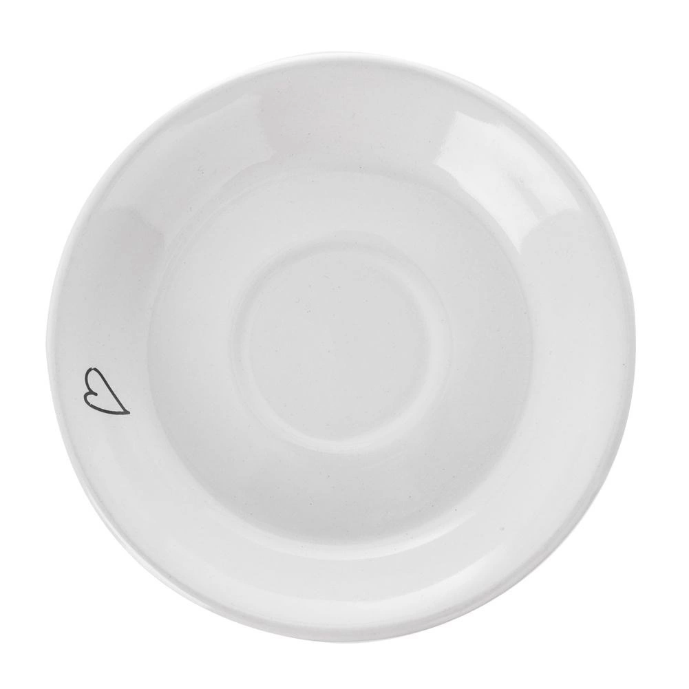 Baltā keramika ar smalku melnu līniju zīmējumu – eņģelis un sirdis – piešķirs jūsu galdam eleganci un oriģinalitāti.