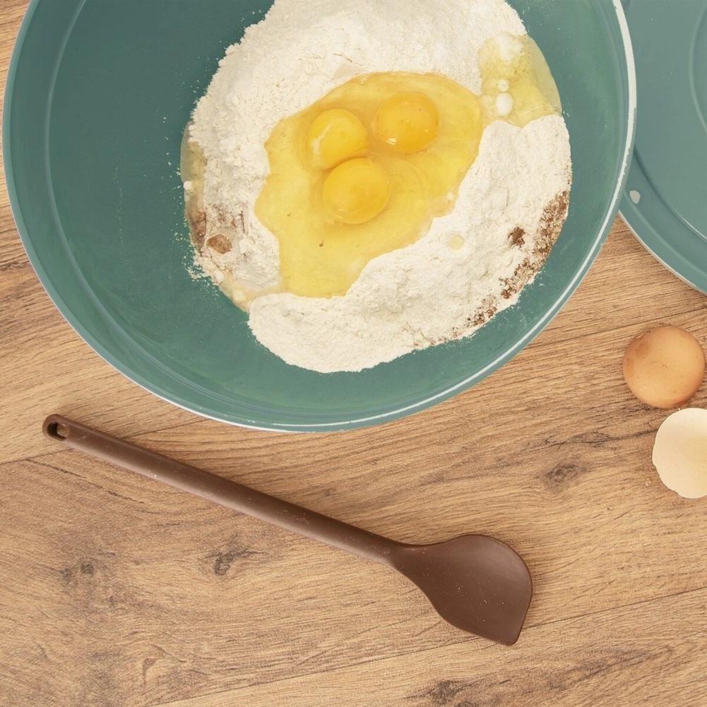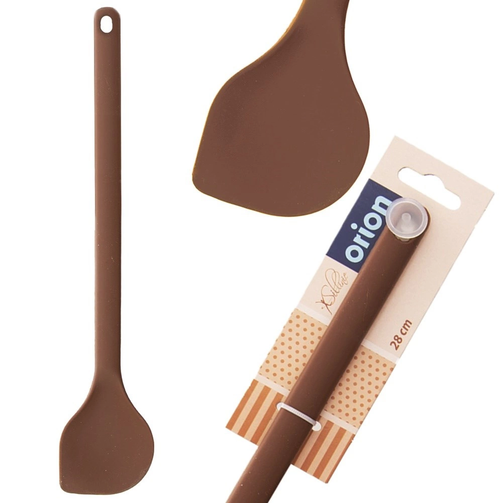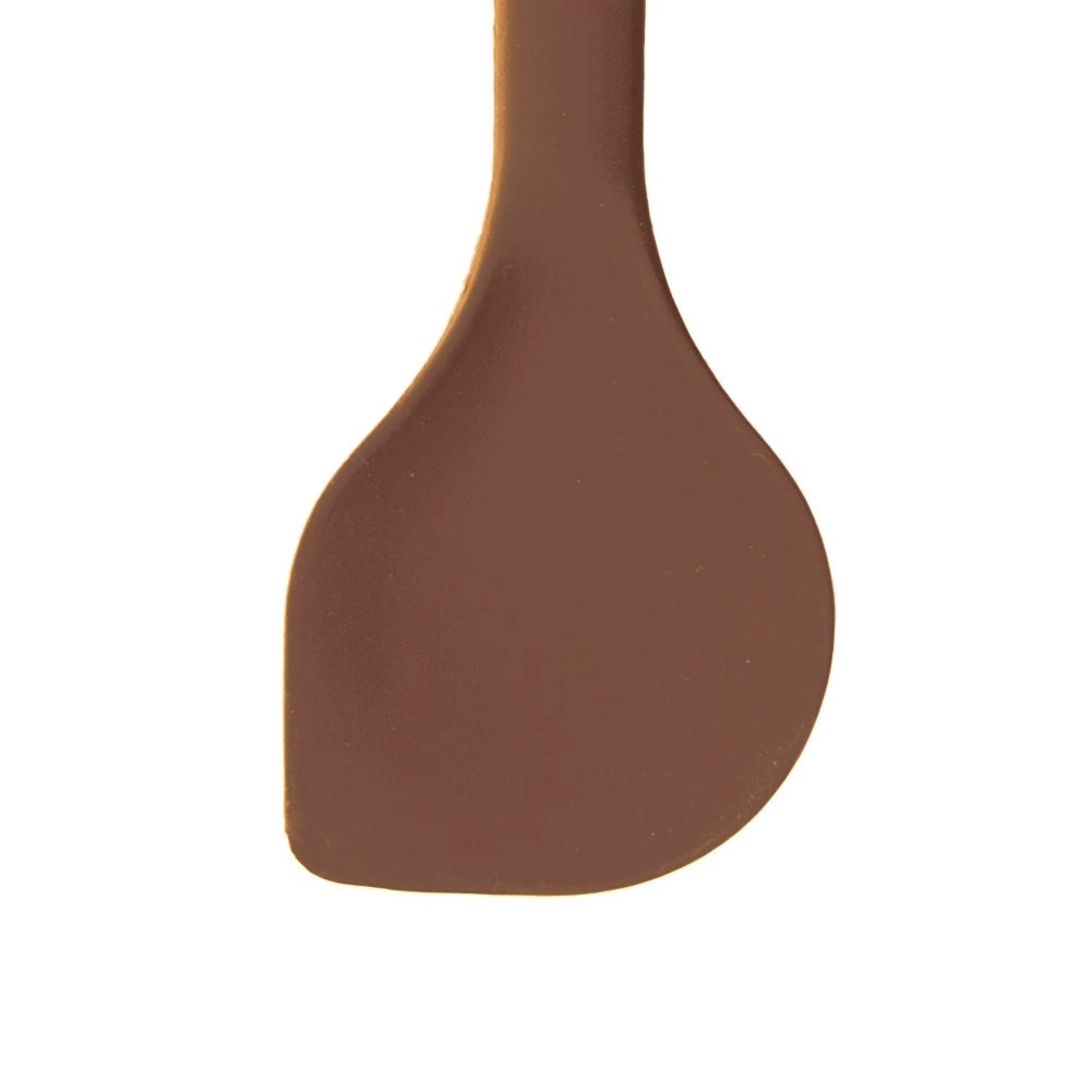 Šī brūnā silikona virtuves lāpstiņa ir uzticams palīgs maisīšanai, izlīdzināšanai, apgriešanai un pasniegšanai. Kvalitatīvs silikons ar iekšējo metāla pastiprinājumu nodrošina ideālu stabilitātes un elastības apvienojumu, tāpēc ērti aizsniegsiet bļodas un pannas, nesaskrāpējot virsmu.