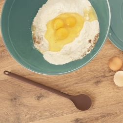 Vienteiluma konstrukcija viegli kopjama – silikons neuzsūc smakas un šķidrumus, un izstrādājumu var mazgāt trauku mazgājamā mašīnā. Praktiskais pret-slīdes rokturis labi turas arī ilgākas maisīšanas laikā, bet atvere roktura galā atvieglo piekāršanu uz sliedes.