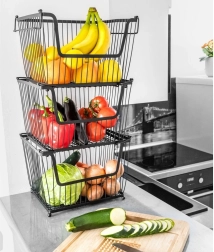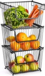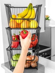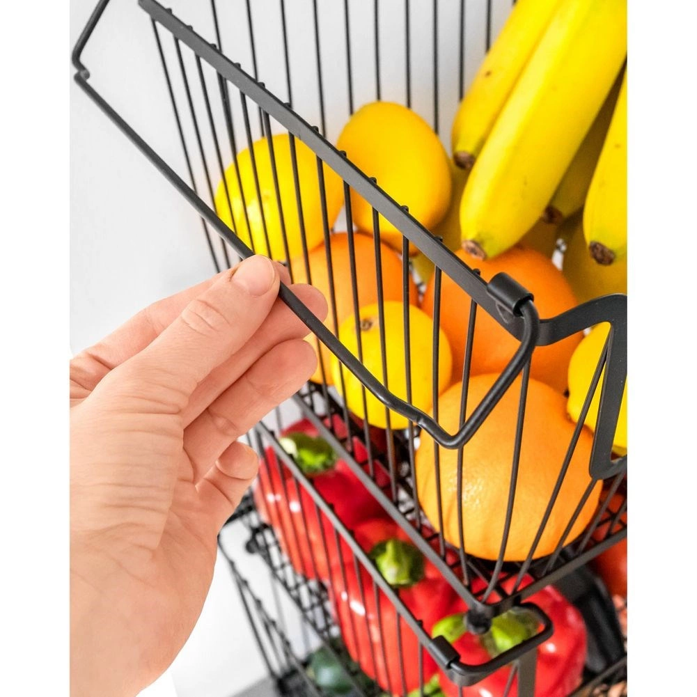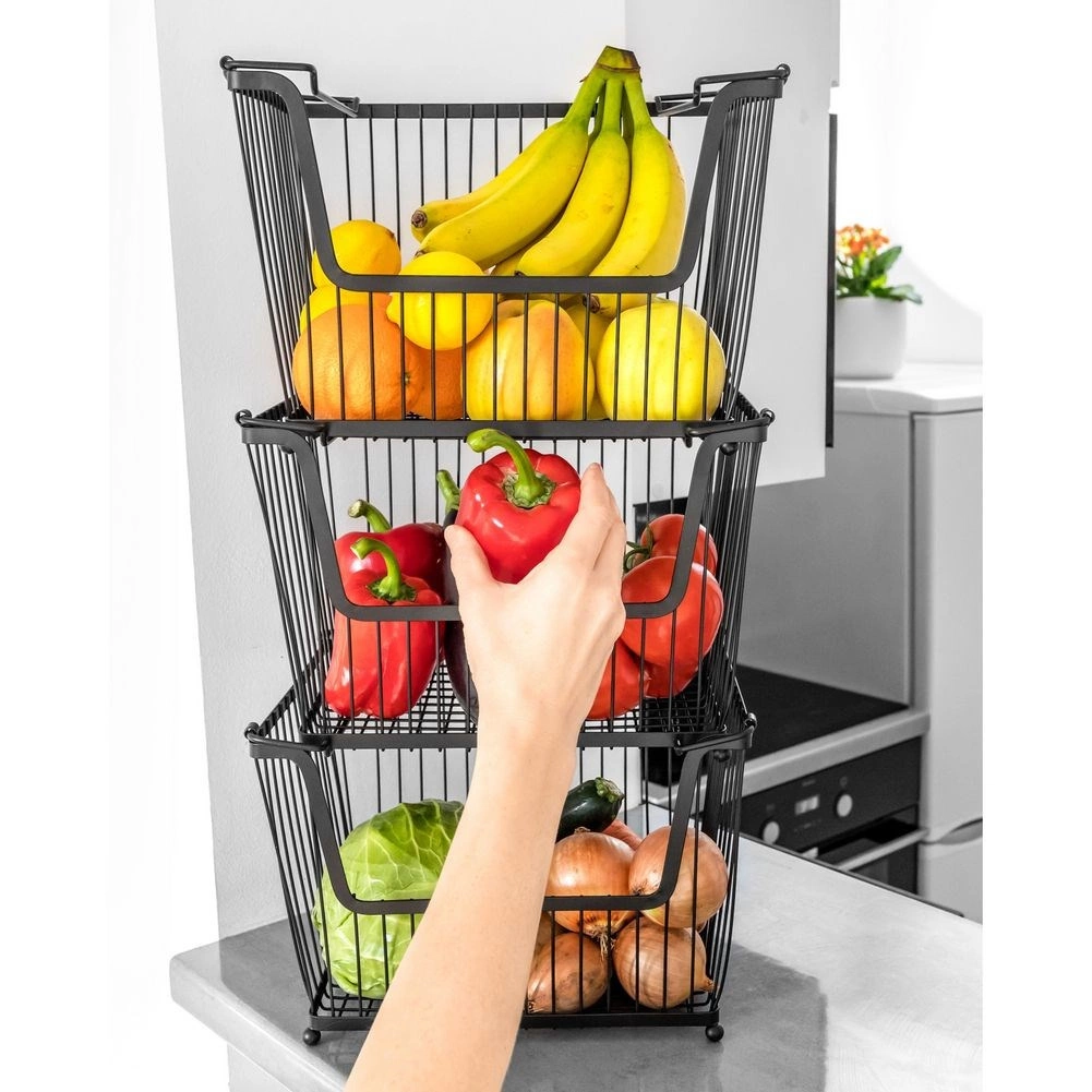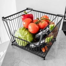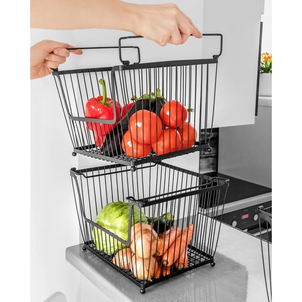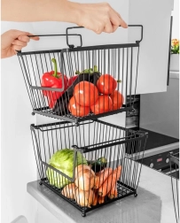 Vairākus grozus var sakraut vienu uz otra, veidojot praktisku daudzlīmeņu statīvu, kas uztur virtuvi pārskatāmu un izmanto vertikālo telpu.