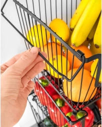 Elegants un universāls risinājums mājokļa organizēšanai. Melns stiepļu grozs ar pulverkrāsotu virsmu lieliski sader ar loft, industriālo un glamour interjera stilu. Ideāli piemērots augļu un dārzeņu izvietošanai uz virtuves letes vai ēdamgalda, kā arī der garšvielām, maizes izstrādājumiem, konserviem vai sīklietām birojā.
