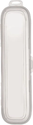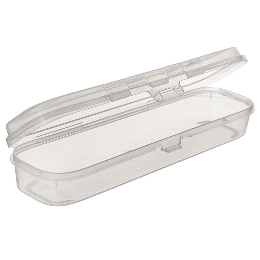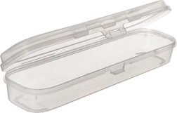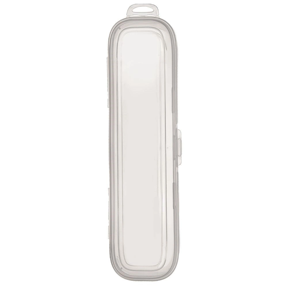 Praktisks caurspīdīgs futrālis drošai zobu birstu, briļļu, galda piederumu vai kosmētikas glabāšanai un pārvadāšanai. Izturīgs plastmasas izpildījums, uzticams aizspiežams aizdare un cilpa piekāršanai padara to par ideālu ceļabiedru gan ceļojumos, gan skolā. Izmēri 25 × 6 × 4 cm.