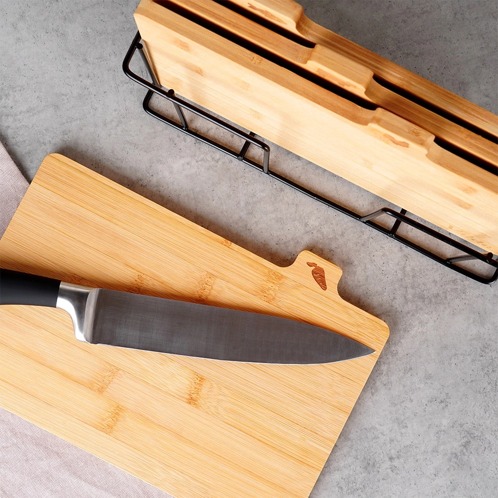 Kāpēc izvēlēties bambusu: tas ir viegls, izturīgs, saudzīgs pret nažiem un dabiski izturīgs pret mitrumu un deformācijām. Pateicoties ātrai žūšanai un tam, ka tas neuzsūc smakas, bambuss ir ideāli piemērots ikdienas gatavošanai. Laikmetīgs izskats un kompakti izmēri lieliski iederas jebkurā virtuvē.