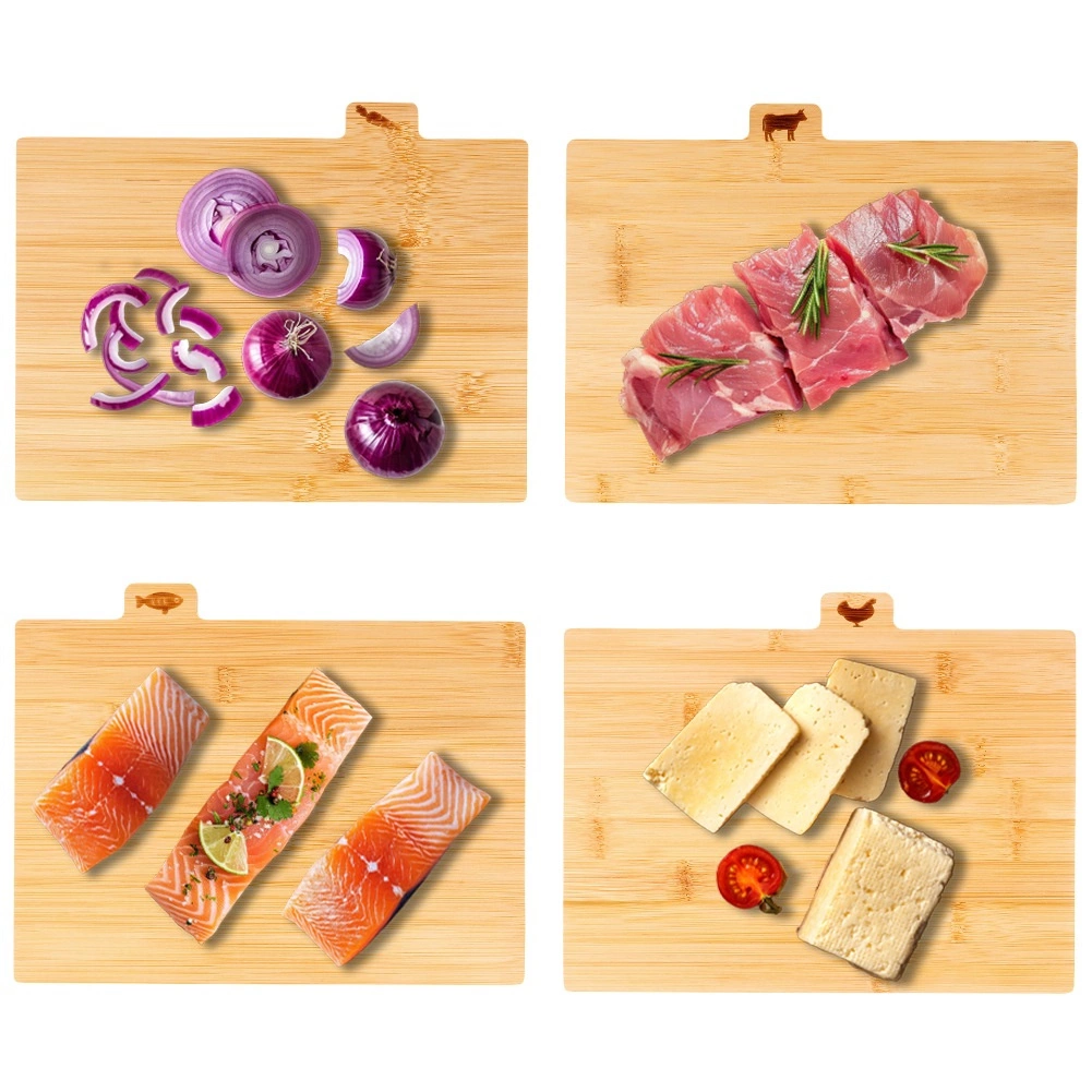 Katra dēlīša cilnē iegravēta ikona konkrētam produktu tipam – dārzeņiem, mājputniem, gaļai un zivīm. Tas palīdz viegli izvairīties no krusteniskas kontaminācijas un uzturēt tīrību gatavošanas laikā.
