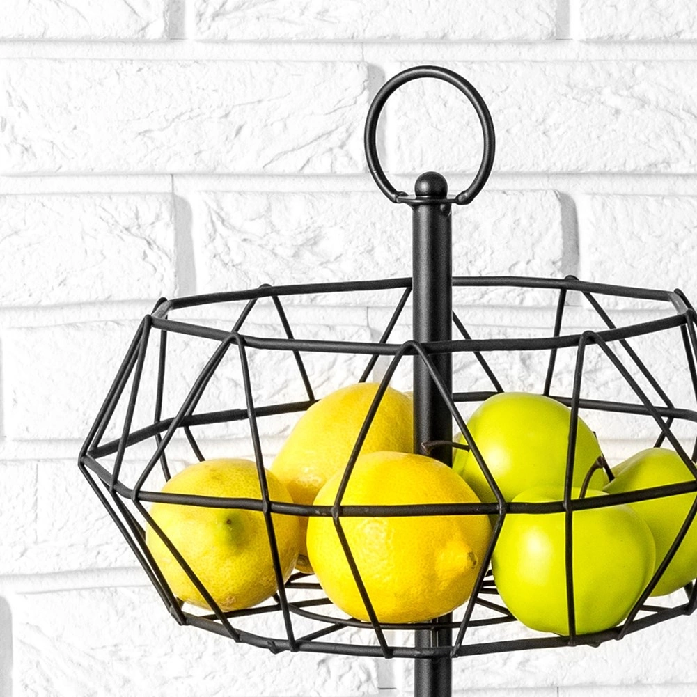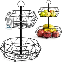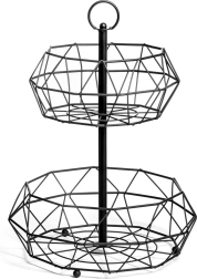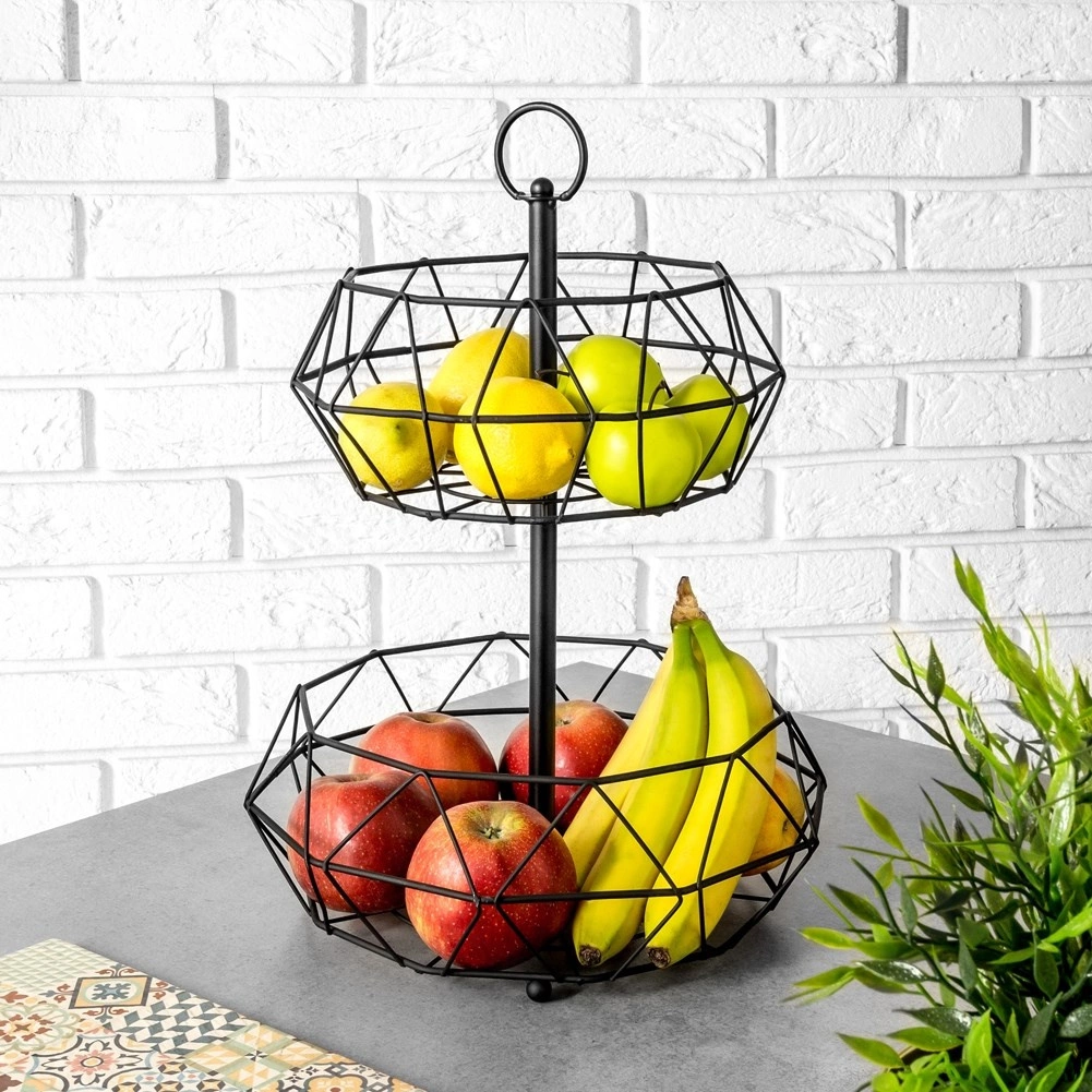 Šis divstāvu stiepļu statīvs ir ideāls stilīgai izvietošanai un pārskatāmai uzglabāšanai gan augļiem, gan dārzeņiem uz virtuves letes vai ēdamgalda. Atvērtā konstrukcija nodrošina optimālu gaisa cirkulāciju, kas palīdz ilgāk saglabāt augļus svaigus un ļauj ātri pārskatīt saturu.