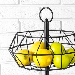 Elegants divstāvu grozs no metāla stieples konstrukcijas melnā krāsā piedāvā praktisku augļu un dārzeņu uzglabāšanu ar dabisku gaisa cirkulāciju. Pateicoties mūsdienīgam ģeometriskam dizainam, tas lieliski iederas mūsdienīgos, industriālos un glamour interjeros, turklāt ir stabils, viegli pārnēsājams un vienkārši kopjams.