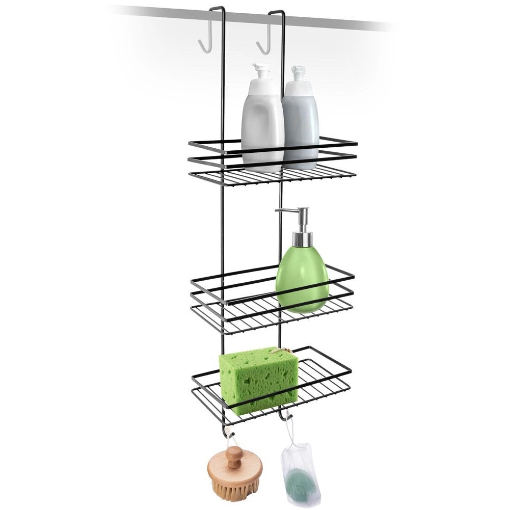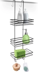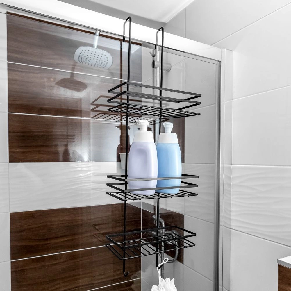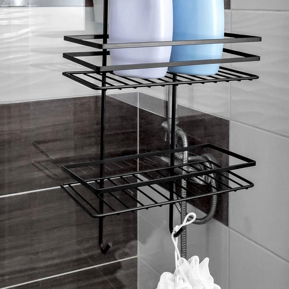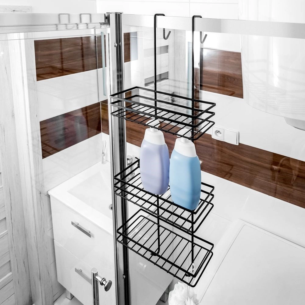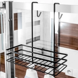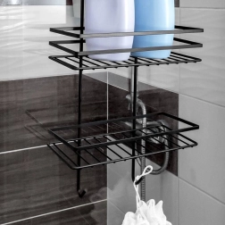 Praktisks piekarināms dušas plaukts elegantā melnā krāsā uzturēs visas jūsu nepieciešamās lietas kārtībā un pa rokai. Piedāvā trīs ietilpīgus plauktus šampūniem un gēliem, četrus āķus sūklīšiem un birstēm, kā arī uzstādīšanu bez urbšanas – piekarinot pāri stikla dušas durvju augšējai malai. Izturīgs, pulverkrāsots metāls nodrošina ilgu kalpošanas laiku un vieglu kopšanu.