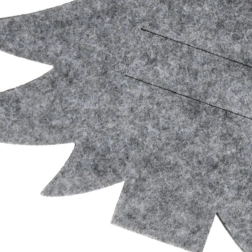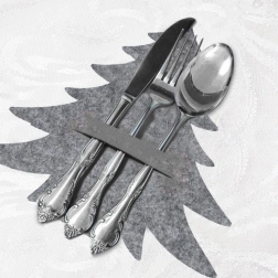 Pievienojiet svinīgam klājumam īpašu šarmu. Elegantie pelēkie filca maciņi koka formā izceļ galda noformējumu un notur piederumus kopā. Pateicoties gudriem iegriezumiem, piederumu ievietošana un izņemšana ir ātra un ērta, turklāt kabata ietilpina trīs lielus gabalus – karoti, dakšu un nazi.