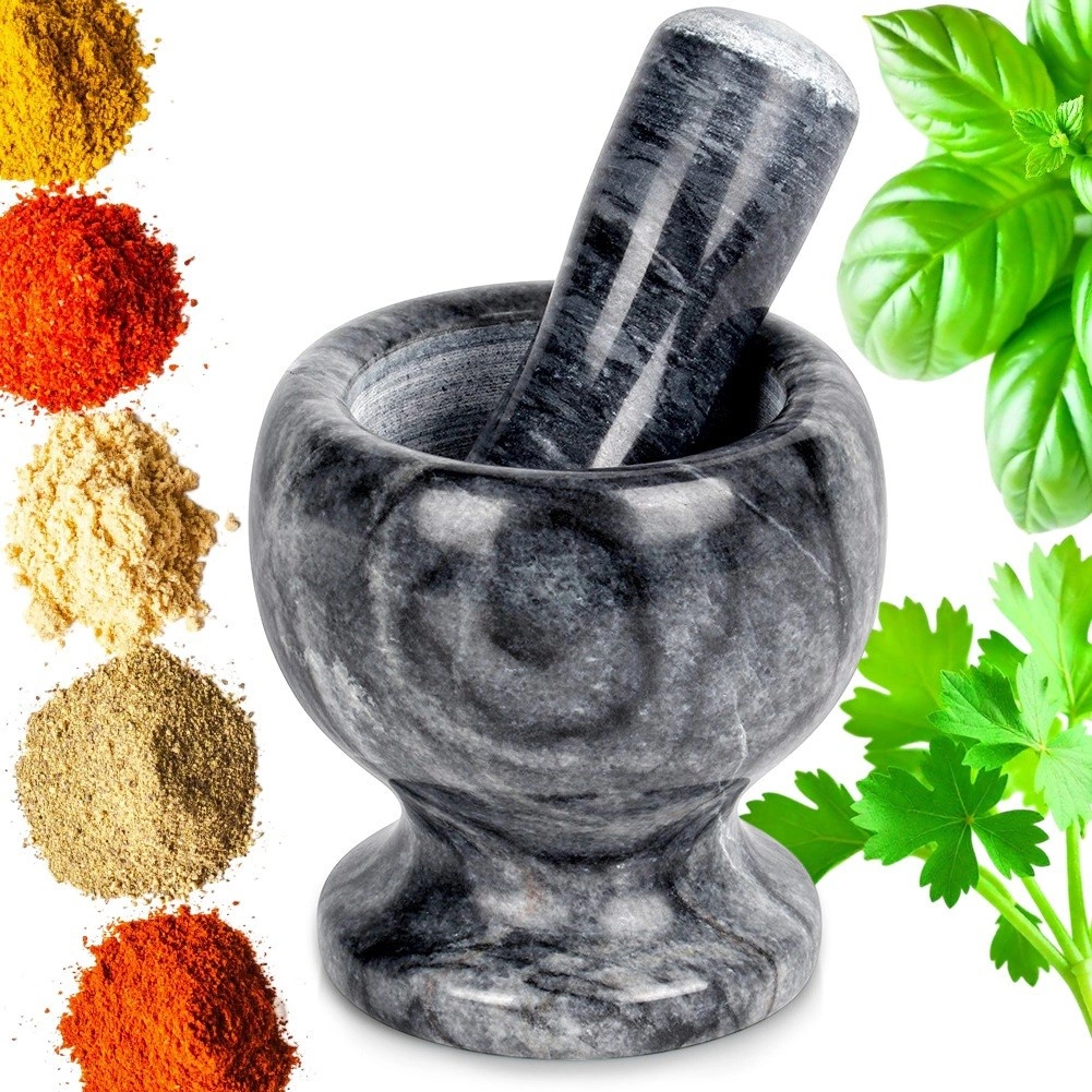 Smagais akmens droši turas vietā un nodrošina spēku ātrai un efektīvai garšvielu un pat cietu sēklu saberšanai.