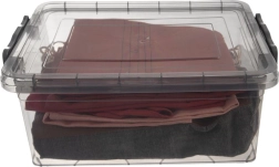 Universāla plastmasas kaste ar 14 l tilpumu un drošu vāku ar klipiem ir ideāli piemērota pārtikas uzglabāšanai, apģērbam un sīklietām. Pateicoties caurspīdīgajam tumši pelēkajam dizainam, saturu var viegli redzēt, neatverot vāku. Materiāls ir bez BPA, iztur temperatūras no -25 °C līdz +95 °C, ir piemērots trauku mazgājamajai mašīnai, mikroviļņu krāsnij (bez vāka), ledusskapim un saldētavai. Aizveramais vāks ar diviem klipiem pasargā saturu no mitruma un putekļiem un nodrošina drošu pārnēsāšanu.