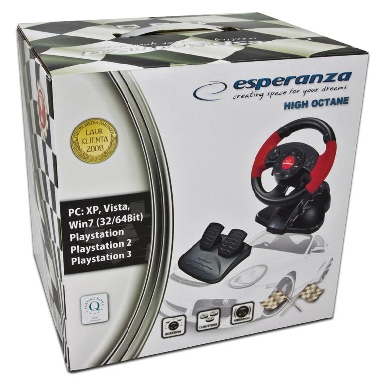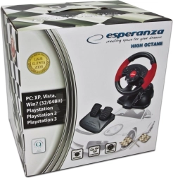 Esperanza High Octane ir kompakta spēļu stūre, kas piemērota datoriem un PlayStation konsolēm. Izbaudiet īstu braukšanas sajūtu, pateicoties atsevišķam gāzes un bremžu pedāļu modulim.