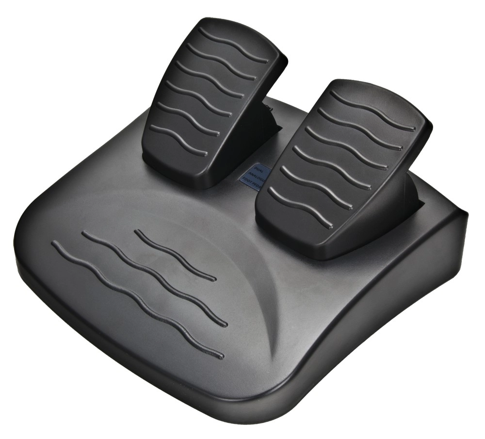 Pedāļu komplekts ar viļņotu tekstūru maksimālai saķerei un vadāmībai — ideāli reālistiskai braukšanas simulācijai.