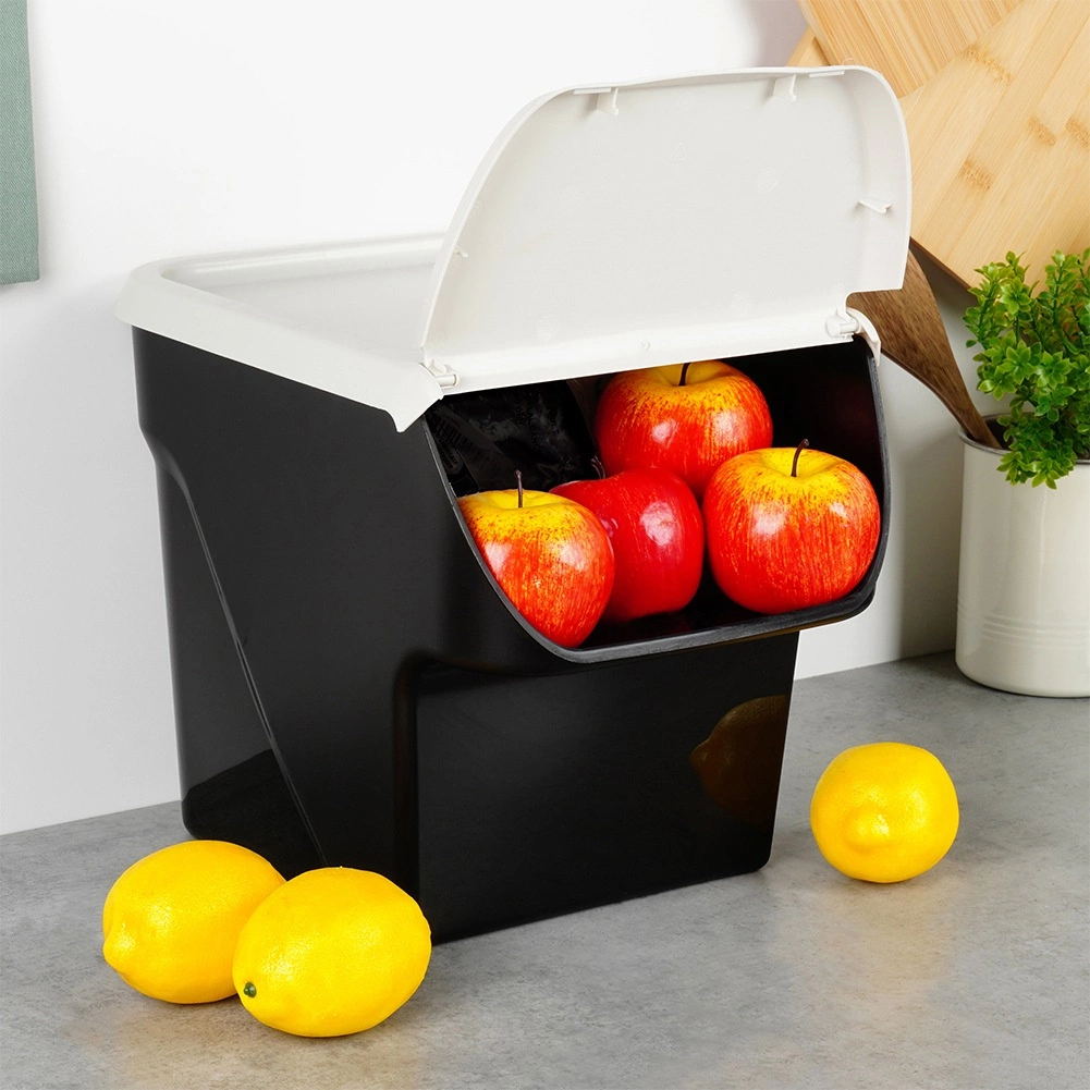 Uzturiet virtuvi un pieliekamo perfekti sakārtotu. Izturīgā uzglabāšanas kaste ar atveramu priekšējo klapi atvieglo ātru satura papildināšanu un izņemšanu bez nepieciešamības noņemt visu vāku. Pateicoties mūžīgajai melnās kastes un gaiši pelēkā vāka kombinācijai, tā iederēsies jebkurā interjerā.