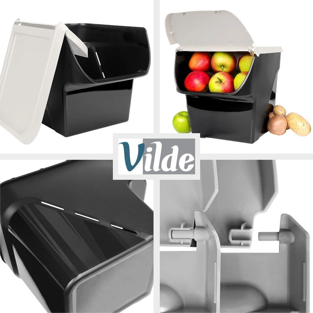 Modulārā forma ļauj droši sakraut vairākas kastes vienu uz otras un uzturēt virtuvi vai pieliekamo nevainojami sakārtotu.