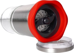 Elegantais metāla korpuss ērti turams rokā, pretbīdīšanas elements garantē drošu satvērienu un vieglu malšanu arī ar vienu roku. Praktisks vāciņš aizsargā saturu no gaisa un mitruma, tāpēc garšvielas paliek ilgāk svaigas un aromātiskas.