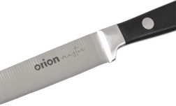 Universāls virtuves nazis no kolekcijas MASTER ar kopējo garumu 23,5 cm un 12,5 cm garu augstas kvalitātes nerūsējošā tērauda asmeni. Piedāvā ilgi noturīgu asumu, stabilu pilno kātu un ergonomisku ABS rokturi ar trīskāršu kniedējumu drošai un ērtai satvērienam mājās un gastronomijā.