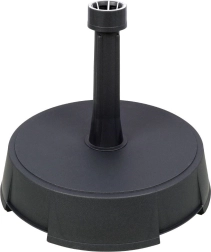Stabils un izturīgs betona statīvs dārza saulessargam elegantā antracīta krāsā. Pateicoties 15 kg svaram, 39 cm diametram un 10 cm biezumam, tas nodrošina lielisku stabilitāti vējā. Izgatavots no kvalitatīva betona un izturīgas plastmasas, piemērots saulessargu kātiem ar diametru 18–32 mm un paredzēts lietošanai ārā visu gadu.