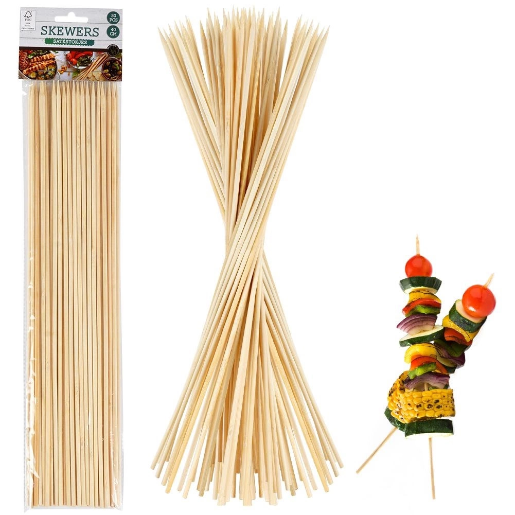 Šie garie bambusa iesmi ir ideāli šašliku, kebabu un jaukto špīžu pagatavošanai uz grila vai krāsnī. Pateicoties 40 cm garumam, tie ietilpina vairāk sastāvdaļu un nodrošina vienmērīgu izcepšanos. Dabīgais bambuss ir gluds, izturīgs un drošs saskarei ar pārtiku.