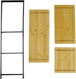 Trīs taisnstūra bambusa plātnes dažādos izmēros nodrošina izturīgu un elegantu virsmu gan desertiem, gan uzkodām.