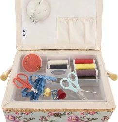 Praktiska kabatiņa sīkumiem un spilventiņš saspraudēm un adatām nodrošina, ka viss ir pa rokai un kārtīgi sakārtots.