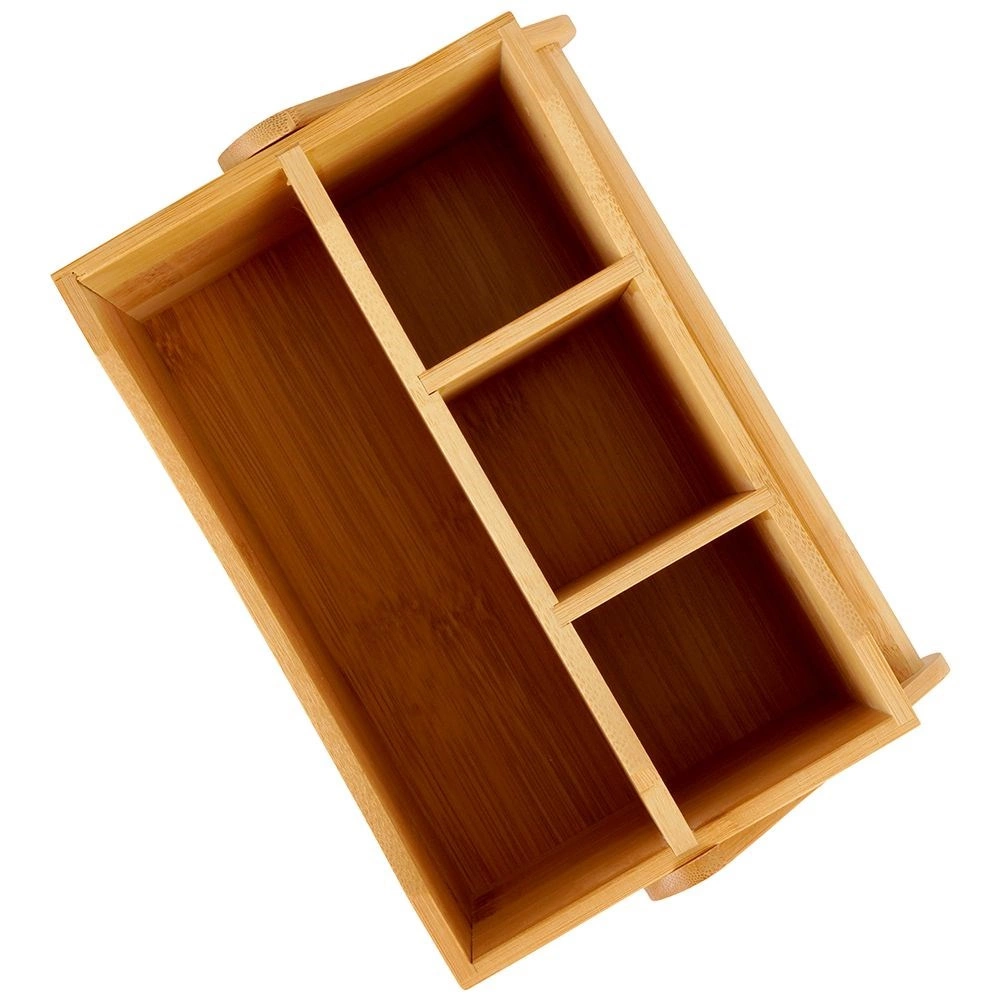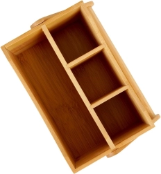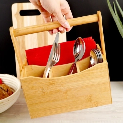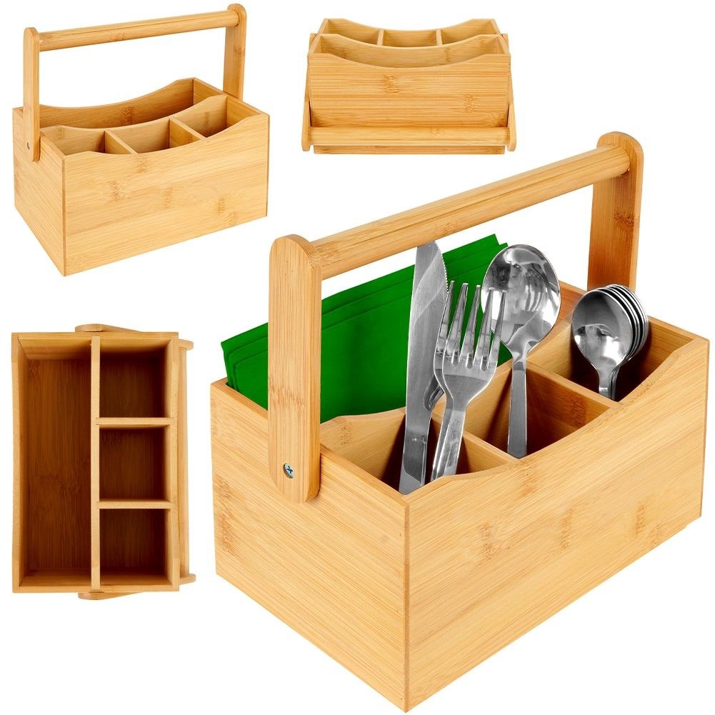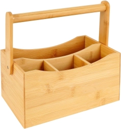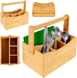 Šis universālais koka kārtotājs ir lielisks palīgs organizēšanai un servēšanai mājās un ēdināšanas nozarē. Četri nodalījumi – trīs mazāki un viens lielāks – ietilpinās galda piederumus, salvetes, piedevas, mērces un nelielus virtuves piederumus. Robusts rokturis nodrošina drošu un ērtu pārnešanu no virtuves uz terasi vai dārzu.