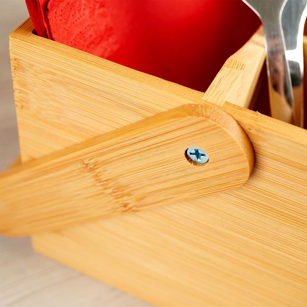 Organizators izgatavots no bambusa koksnes, kas izceļas ar dabisku izturību, zemu svaru un elegantu izskatu. Piemērots mājas galdam, restorāniem, bistro un catering pakalpojumiem, kur tas atvieglo mērču, garšvielu un galda piederumu servēšanu.
