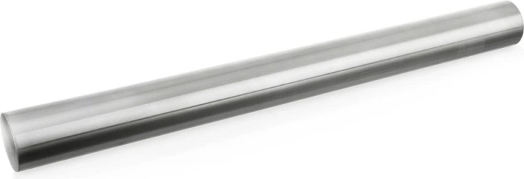 Profesionāls nerūsējošā tērauda rullis bez rokturiem konditorejas un mājas cepšanai. Pateicoties gludajai virsmai, tas ir piemērots fondantam, marcipānam un mīklai, ir nepielīpošs, higiēnisks un viegli tīrāms – droši arī trauku mazgājamajā mašīnā.