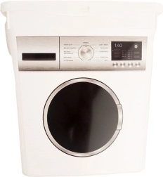 Uzturiet kārtību veļas telpā un vannasistabā. Konteiners ar veļas mašīnas apdruku piedāvā pietiekami daudz vietas veļas līdzekļiem, bet aizveramais vāks palīdz saglabāt to svaigumu un aromātu. Izturīga konstrukcija no kvalitatīvas baltas plastmasas ir viegli kopjama un lieliski iederas jebkurā interjerā.
