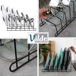 Izmēri 34 × 18 × 18 cm nodrošina stabilu balstu un pietiekami daudz vietas ikdienas traukiem. Atvērta konstrukcija veicina gaisa cirkulāciju un vienkāršu tīrīšanu. Organizators palīdz novērst nekārtību atvilktnēs un aizsargā vākus no bojājumiem.