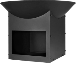 Kvadrātveida pamatne ar priekšējo atveri nodrošina ērtu vietu pagalēm – viss pa rokai, un apkārtne ap ugunskura vietu paliek sakopta.