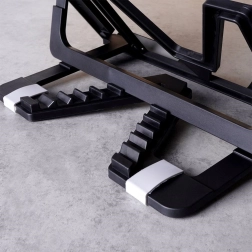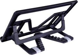 Statīvs izgatavots no kvalitatīvas un izturīgas plastmasas ar ABS stiprinājumiem stabilitātei. Pretbuksēšanas spilventiņi pasargā ierīci un novērš tās pārvietošanos uz galda. Pēc lietošanas to vienkārši salociet līdz plakanai formai – lieliski piemērots pārnēsāšanai un glabāšanai.
