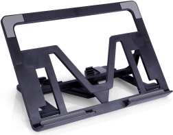 Novietojiet savu planšetdatoru tieši tādā pozīcijā, kādu vēlaties. Šis melnais, kompaktais un salokāmais statīvs piedāvā 6 regulējamas pozīcijas (aptuveni 9,5–14 cm), lai viegli atrastu ideālu leņķi gatavošanai pēc receptes, tiešsaistes sapulcēm vai filmu skatīšanai bez turēšanas rokās.